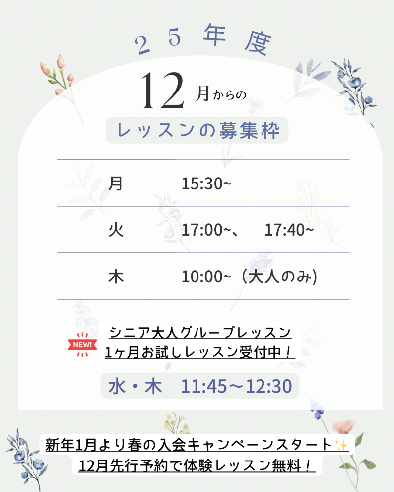 1ヶ月お試しレッスン受付中♪